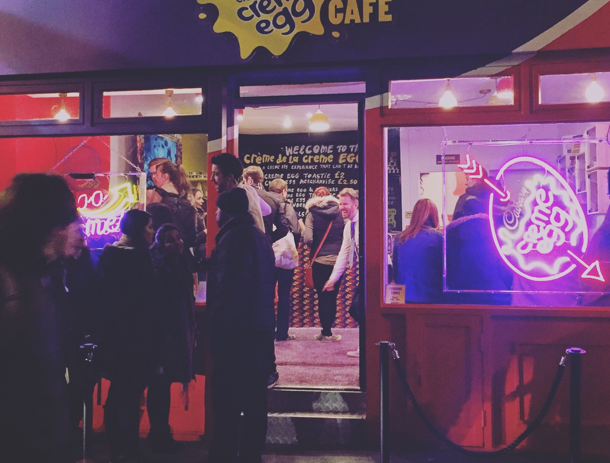 I wanted to go to the Cadbury Creme Egg Café pop-up in Soho. Now, if you haven’t heard of that I will assume that you have been without access to the internet/your eyeballs for several weeks and explain what you’ve missed. Cadburys have opened a three floor café dedicated to the delicacy that is the creme egg for just seven weeks.
