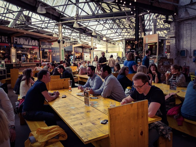 After some very strict instructions about our “departure time” and not being late we decided to go along a little early and find somewhere to grab a bite. Backyard Cinema is currently located in Mercato Metropolinato, a street food centre in South London, so we had plenty of choice. Frazer opted for a Vietnamese pho, I went for a Lebanese falafel wrap (yeah I was feeling adventurous). The pho got 5 star reviews but the Lebanese wrap was unfortunately not a pizza so it falls short at 3 stars.
