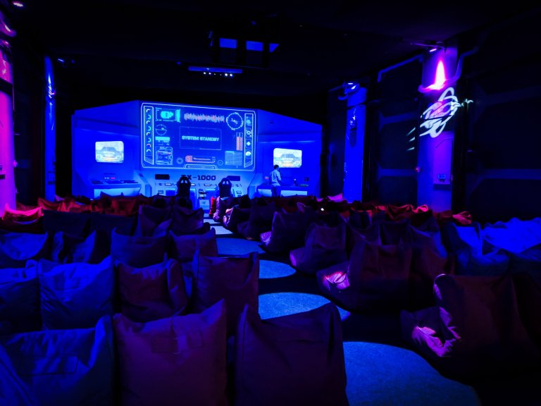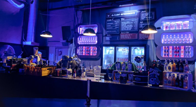 Upon arrival to the spacecraft we were shown to our seats (read: beanbags) and directed towards the in-flight refreshments. There were space cocktails on offer – highlights including the Star-garita and Rocket Fuel, as well as space-themed snacks. Then of course we dabbled in spacecraft piloting and I insisted on taking too many photos.