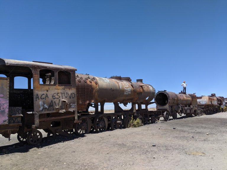 The first stop of the tour was the train graveyard which is actually extremely close to the center of Uyuni (about 5-10 minutes drive). Here we got to take lots of Mad Max-esque photos on the abandoned British import locomotives which have been abandoned since the collapse of the mining industry.
