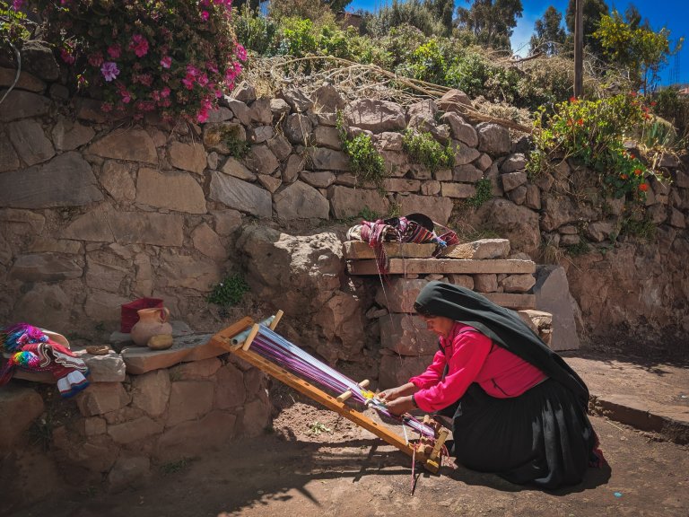 An excellent opportunity to learn more about what life is like for some of the communities of people living on Lake Titicaca, albeit with large groups of tourists in some of the places. The first stop was at the floating Uros Islands, where the people have built their own homes by creating manmade islands using reeds. We were welcomed by the small community of “Condor Uros” who showed us their homes and how they were built, shared their handmade tapestries with us and even sang some traditional songs. We then were offered a ride in a traditional reed boat to the capital Uros island, for 10 soles (about £2).