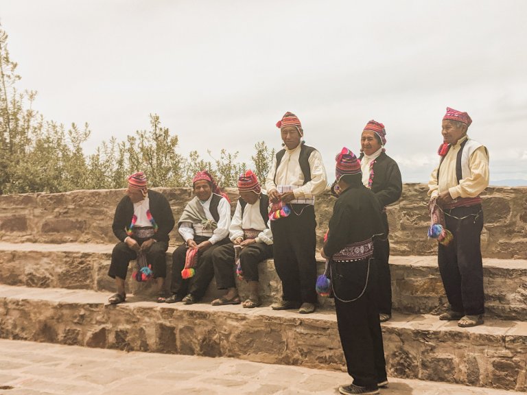After this we travelled further on a regular boat to reach the natural island of Taquile. It’s a long uphill trek to reach the plaza but after that you get to enjoy a lunch prepared by the local people (which was delicious), and learn more about how they live. It’s a peaceful community with no prisons or police, just three simple rules; don’t lie, don’t steal, don’t hurt others. The men knit, the women weave and the six communities rotate responsibilities and location across the island throughout the year.