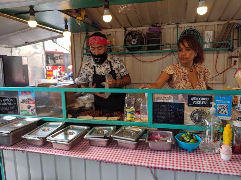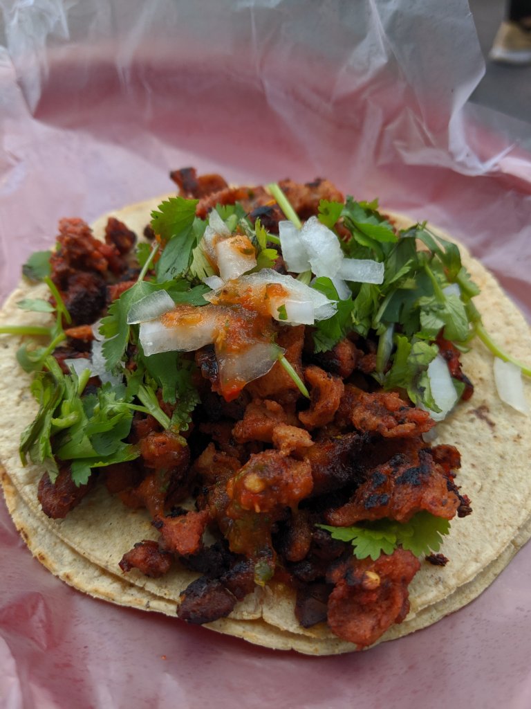 At the end of our walking tour the guide took us to this vegan street food stand in Mexico City. There’s lots of different options for vegan meat substitutes but I decided to go for al pastor tacos – seeing as they’re a local speciality. They were actually really tasty, lots of flavour and just 20 pesos for 2 (about 81p).