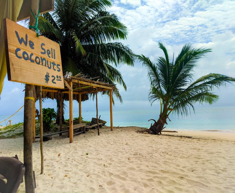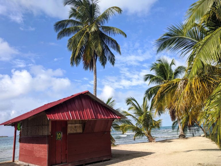 We actually stayed on the beautiful Isla Diablo (Devil Island) in a lovely little hut with sea views. On our island there were two families, each who owned a number of accommodation cabins/huts, a small shop selling souvenirs and a small restaurant for the guests staying overnight. You are only able to walk around just over half of the perimeter of the island, as the other side is fenced off as private land and seems to be a growing space for the families. There was a small beach with some benches and volleyball nets, and the sea here was calm and good for snorkelling – with a small reef around 5m from the shore.
