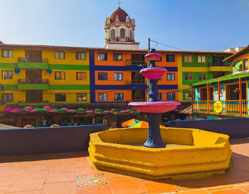 After the disappointment of climbing a big rock, we actually really enjoyed walking around picturesque Guatapé. The houses are colourful, with beautiful unique painted concrete designs that once told the stories of the residents within (but are probably now more a stylistic choice). We also ate lunch at El Patito Modosito (the snuggly duckling) where I had a fantastic milkshake. After a few hours we were ready to head back and so headed down to the waterfront to catch our bus back (note: we bought a ticket for the bus a little bit before leaving as we had heard they can get booked up with people returning to the city in the evening).