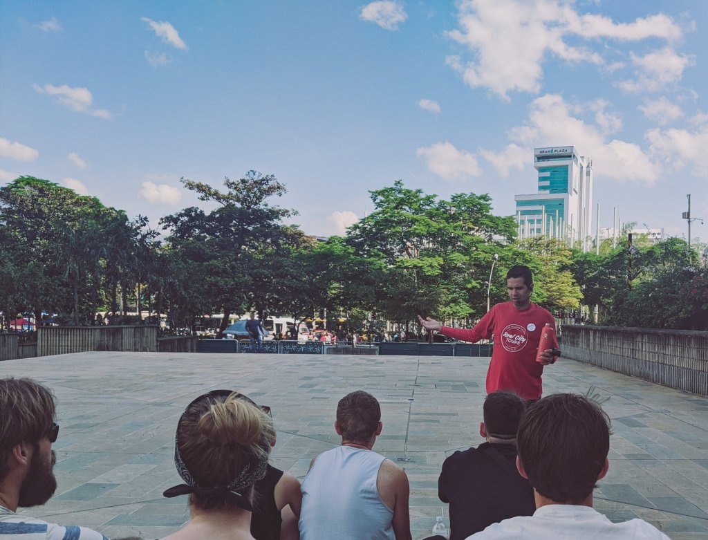 We decided to start the first morning of our first day in Medellin with a city walking tour, as it always helps us get our bearings and a bit more understanding of the place we are exploring. Real City Walking Tours are rated as the number one thing to do on Trip Advisor so we went with the hope and we’re so glad we did. Our guide Julio, an ex school teacher, and passionate paisa, was brilliant. He was clear, interesting and had such an obvious passion for his city which helped us fall in love with Medellin. Julio talked about different types of people in Medellin; the adults who lived through the city’s most difficult times, the people who knew nothing of Medellin’s struggles and the “pop culture generation” – educated by means of Netflix and other entertainment who glamourise Medellin’s history. We have to be honest and say that we definitely fit into this final category, I mean come on – who hasn’t seen Narcos? But after this tour we came away with a better understanding of the magnitude of terror that the people of this city had suffered, and the real feeling of hope and happiness that surrounds it now. Because of this Julio said that he would not be using the name of famous drug lord Escobar during our tour and urged us to do the same when in public – after all, for many he is not a celebrated figure of history but an embarrassing part of their recent past. We saw main sights in the city centre, learnt about history and politics in Colombia, tried tasty local foods upon Julio’s recommendation and even had the opportunity to ask any questions we wanted about how Colombian people live.